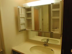 鏡の内側に収納スペースのある化粧鏡に交換!