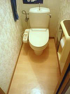 トイレ,壁紙,床CF張り替え、ウォシュレット付便器取り付け工事